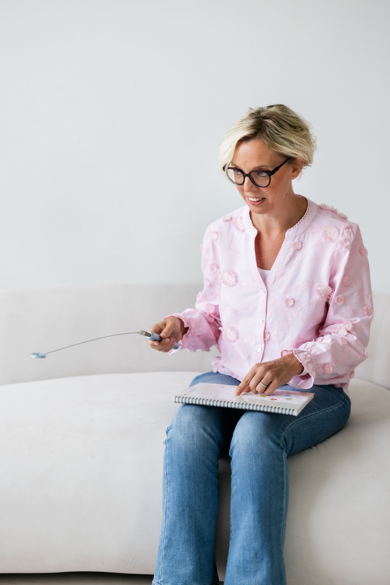 Ik werk met de biotensor, zoals te zien is op de foto.Een biotensor is een energetisch meetinstrument die voor jou zichtbaar maakt wat jouw onderbewustzijn je wil vertellen.Als we iets aanraken wat klopt, resoneert dit met ons lichaam en krijgen we een JA-beweging in de biotensor te zien. Wanneer iets gezegd wordt wat niet resoneert, krijg je een stressreactie in je lichaam die de biotensor oppakt en vertaalt naar een NEE-beweging.Op deze manier kunnen we doelgericht en zonder saboterende mechanismen onderzoeken welke emotionele blokkades er in de weg zitten en welke triggers hieraan ten grondslag liggen. Zo wijst jouw onderbewustzijn ons de weg.